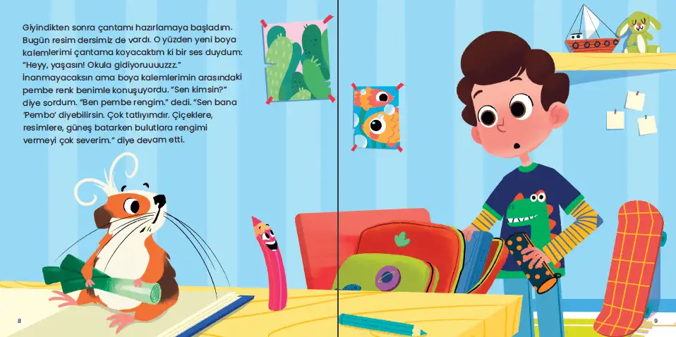 Bazen güneşin sarısı mutlu eder bizi, bazen de denizdeki dalgaların mavisi. Bazen mor bir menekşe, bazen ise güneş batarken bulutların üzerinde beliren pembe rengi... Bütün renkler mutlu eder bizi. Peki, senin i in bugün mutluluğun rengi hangisi?’ ’ Doruk bu macerasında mutluluğun rengini keşfediyor. Senin mutluluk rengin hangisi? Doruk’la mutluluğun rengini keşfetmeye var mısın?