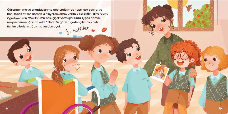 Bazen çok şey isteriz ve istediğimiz şeylerin hemen olmasını bekleriz. Beklemek çok sıkıcıdır. Çünkü sabretmeyi pek sevmeyiz. Ama böyle emek vererek ve bekleyerek yapılan şeylerin tadı başkaymış. Ben, bugün sabrederek ve bekleyerek mutluluğun tadına kavuştum. Duru bu macerasında mutluluğun tadını keşfediyor. Üstelik emek harcamanın ve sabrederek beklemenin ne kadar keyifli olduğunu fark ediyor. Duru için mutluluğun tadı saksıda yetişen çileklerde saklı. Peki, senin için mutluluğun tadı nerede saklı?